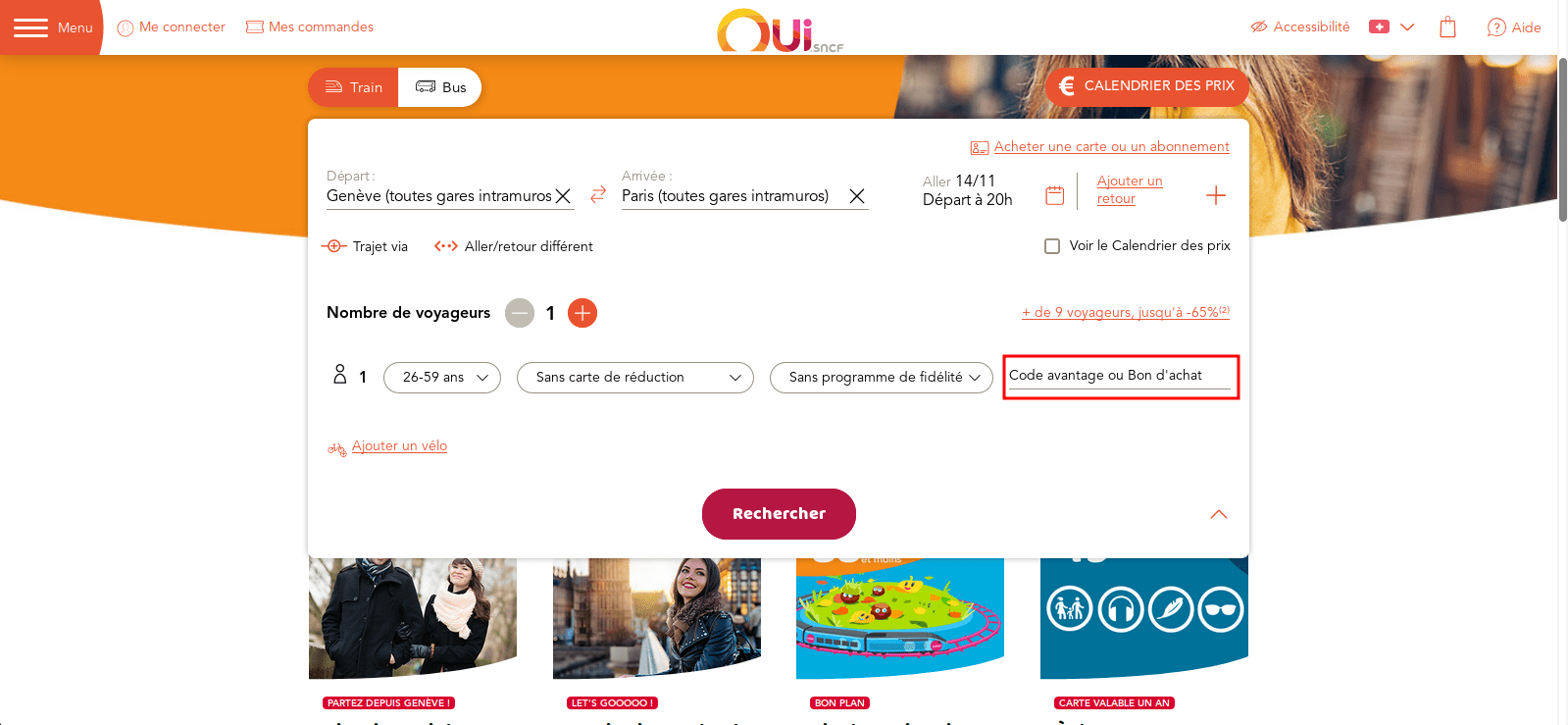 Le remboursement des billets tgv inoui, ouigo, intercité. Under the section where you can pick the number of passengers for your trip, there's a little checkbox with the words promo code next to it. Online exclusive deals & discounts. If you do not find the promo code you want, you may not find it on other coupon sites. Don't forget to check we are glad to help you save more when shopping on en.oui.sncf.